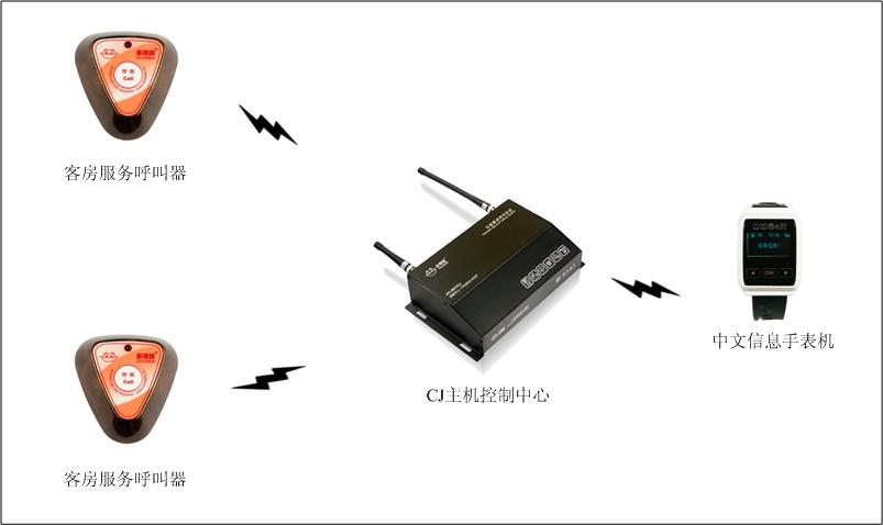 ◆ 使用说明:每间客房内安装的一个服务呼叫器,客人在客房内可以通过呼叫器来呼叫楼层服务员,服务员通过随身携带的手表接收机可以接收到客人的呼叫,信息机可以随身携带,随时接收,及时为客人提供服务。
