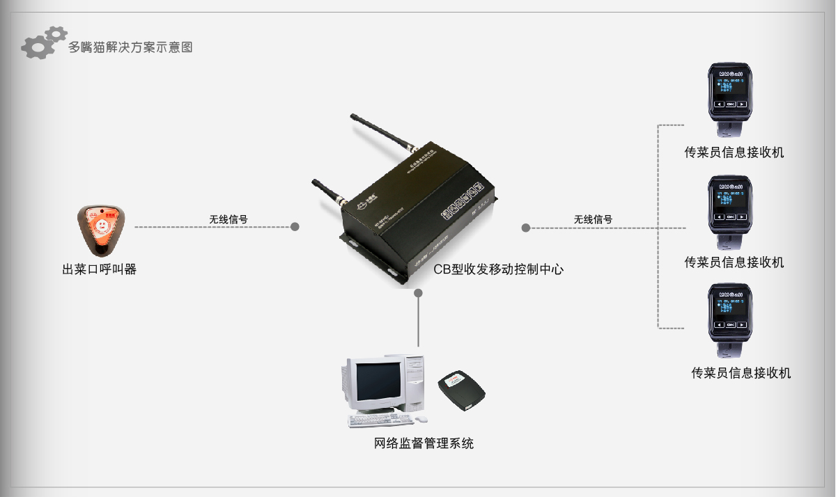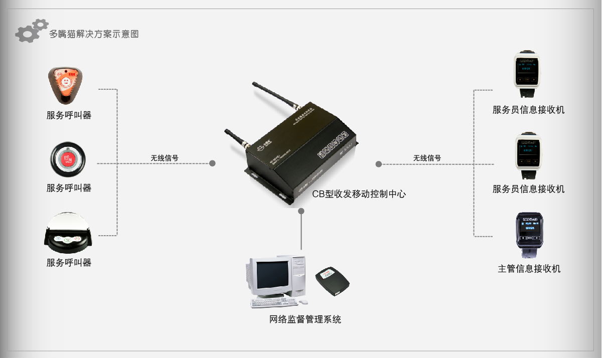 多嘴猫公司致力于为中西餐饮客户提供最专业的无线呼叫解决方案。已经推出了多款适合餐饮业客户的解决方案,如实用型餐饮无线服务呼叫管理解决方案;餐饮无线服务、菜品评价投诉呼叫管理解决方案;空桌核实等餐排队叫号系统解决方案等。能够实现各类型中西餐厅内部的无线服务呼叫、菜品及服务评价管理、空桌核实排队叫号、自助取餐传菜等功能。有效提升各类餐饮企业的服务品质和效率,提升企业的美誉度和好评率,是现代餐饮机构首选的无线呼叫产品。